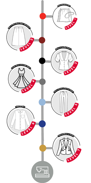 All aspects of sewing are taught, from foundational sewing skills in Level 1 and progressing to tailoring in Level 7. We'll also teach you how to "fit" by customizing any sewing pattern based on your body variation(s) to meet your specific needs. Your skill level and knowledge will grow as you advance through the program with each project, which increases in the degree of complexity with each level. By completing Level 7, you'll be considered an experienced sewist.